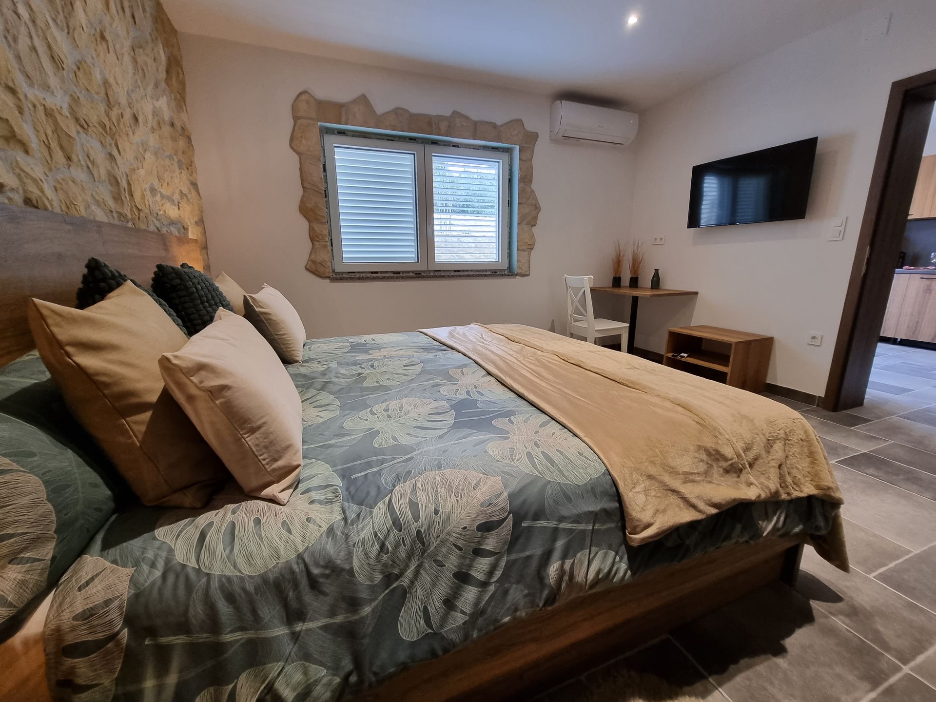 Tražite apartman za dvije osobe? Zamislite savršeno utočište na prizemlju, s privatnom terasom koja nudi mir i tišinu. Uđite kroz zaseban ulaz i otkrijte udobnu spavaću sobu koja obećava miran san. Prostrana kupaonica pruža dovoljno prostora za opuštanje nakon dana istraživanja, dok dnevni boravak s kuhinjom i blagovaonicom nudi savršen prostor za zajedničke trenutke. Ovaj apartman je idealan spoj funkcionalnosti i udobnosti, stvoren za stvaranje nezaboravnih uspomena.